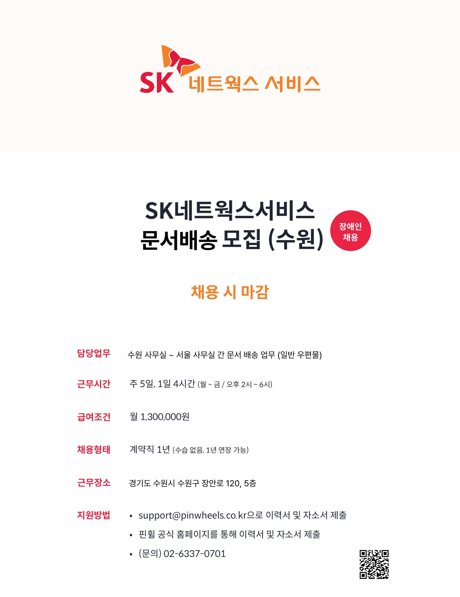 [사무직 📝 ][SK네트웍스서비스] 문서배송 모집 (장애인 채용)