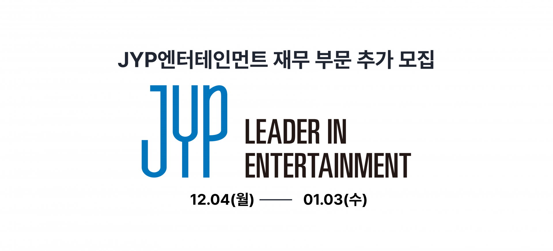 JYP엔터테인먼트에서 재무 부문에 한정하여 추가 모집을 진행합니다! 채용 절차와 자격요건이 조금 바뀌었으니, 참고해주세요!