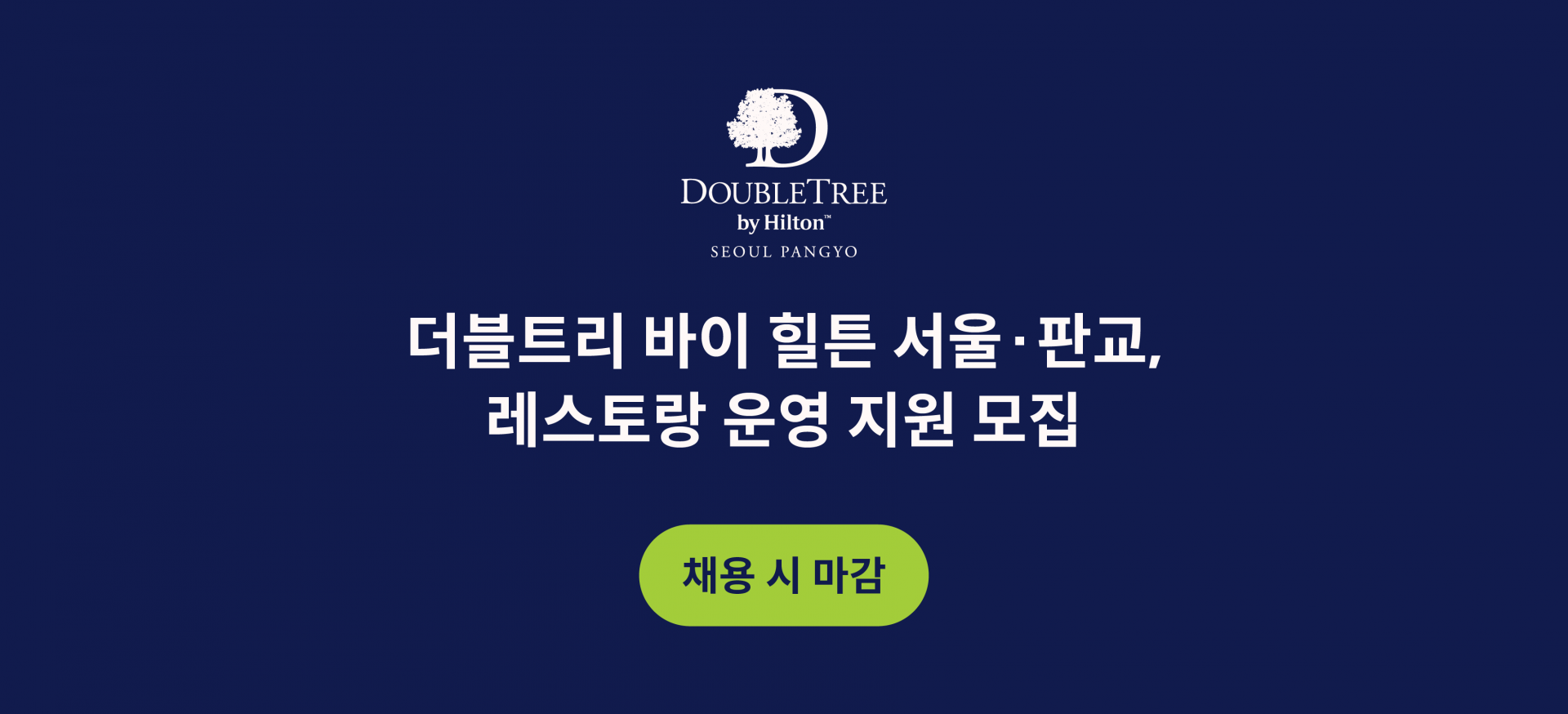 더블트리 바이 힐튼 서울 판교는 한국에 첫 번째로 오픈한 힐튼의 시그니처 업스케일 브랜드 호텔입니다. 힐튼은 전 세계 123개국에서 7,200여 개의 호텔을 운영하고 있으며, Fortune의 "100 Best Companies to Work For"와 "Great Place to Work in Asia"로 2021년과 2022년도 일하기 좋은 회사 2위로 선정되었습니다. 한국에서는 여섯 번째로 선보이는 힐튼 호텔이자 경기 남부지역의 최고급 호텔로 “온 세상을 밝고 따뜻한 환대의 온기로 가득 채우자”는 힐튼의 신념을 함께 이루어나갈 수 있도록 여정을 함께할 인재를 모집합니다. 100년 이상의 역사를 이어온 힐튼에서 여러분의 가장 빛나는 커리어를 시작해보세요!