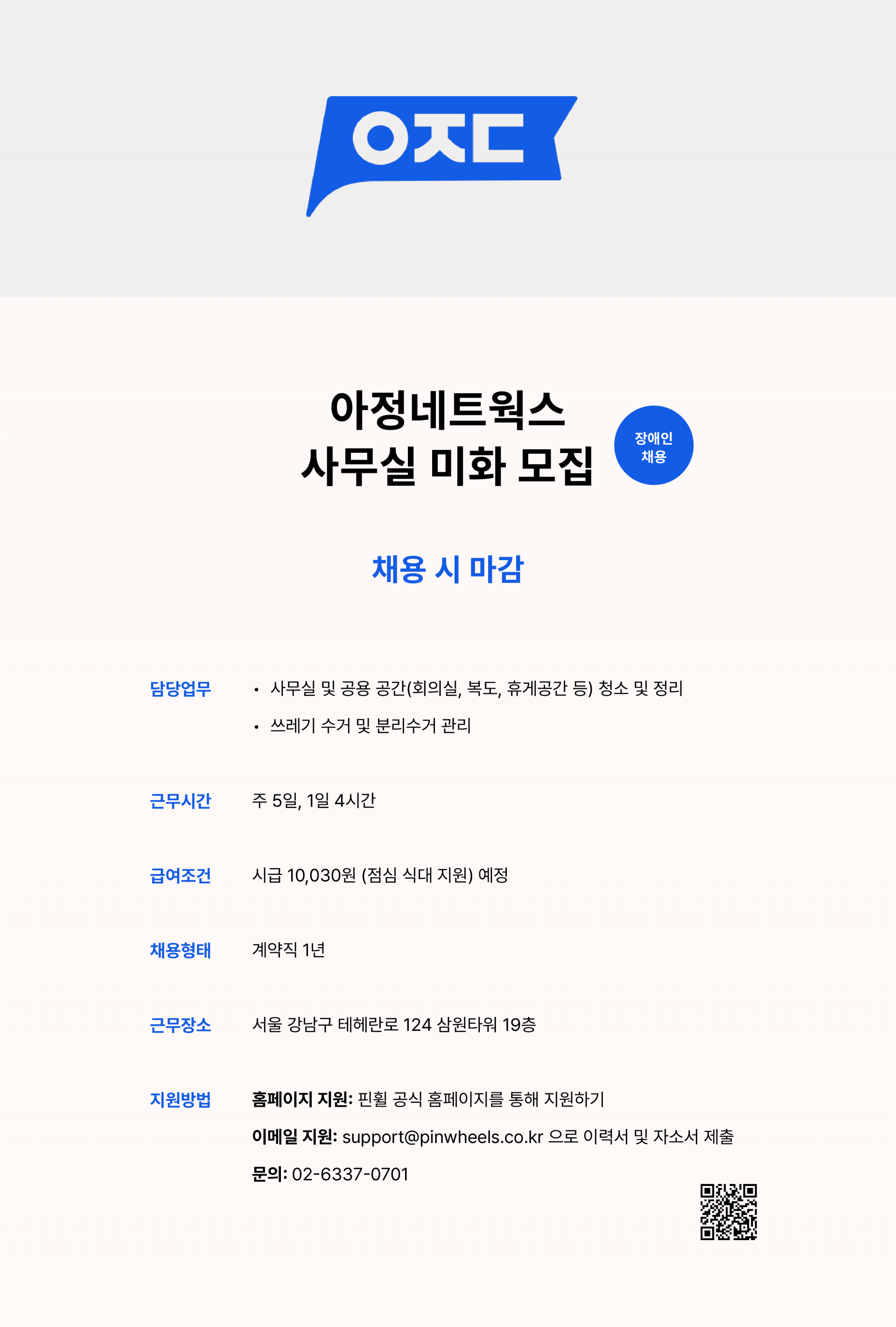 | 급여 | 시급 : 10,030원 (점심 식대 지원) |